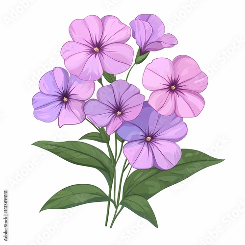 Vibrant Purple Floral Illustration: Beautiful Botanical Art with Delicate Phlox Blossoms for Springtime Crafts