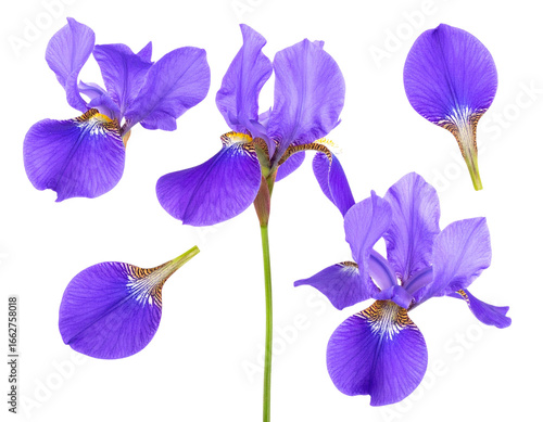 Vibrant purple flowers bloom on a delicate stem, isolated on white or transparent bac