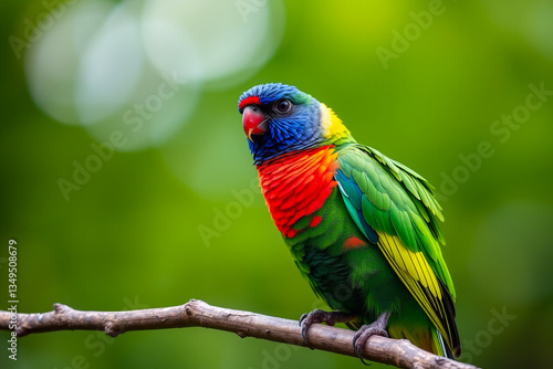 Vibrant Quetzal Plumage Displayed on a Tree Branch, Showcasing Its Bright Colors and Exotic Beauty in a Natural Forest Setting