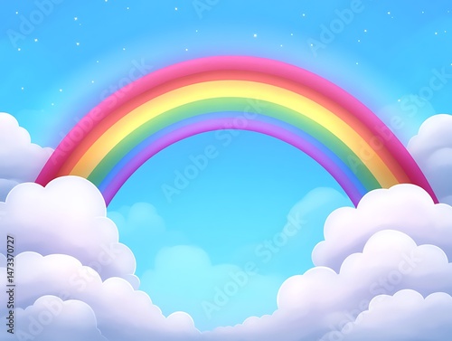 Vibrant Rainbow Arcing Over Fluffy Clouds in a Sunny Sky A Perfect Image for Children's Books or Happy Designs