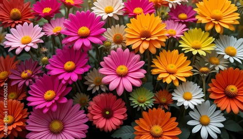 Vibrant Rainbow of Colorful Daisies: A Vivid Floral Tapestry