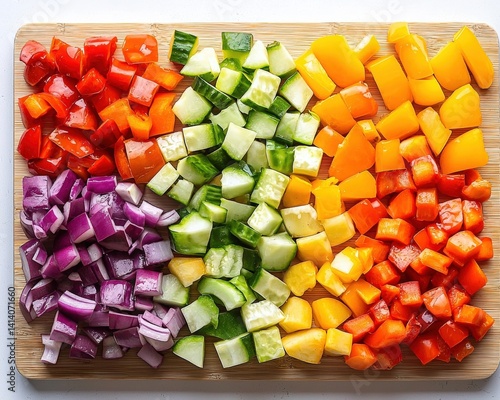 bell pepper, food photography, cucumber, wooden board, cooking ingredient, red onion, diet food, healthy eating, health food, fresh vegetable, chopping board