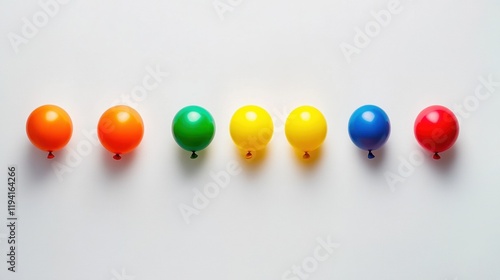 Vibrant Rainbow-Colored Balloons Signifying Celebration and Joy on a Bright White Background