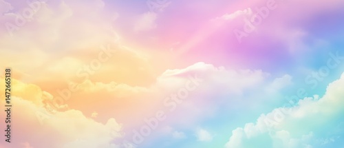 Vibrant rainbow-colored sky with soft fluffy clouds du sunset or sunrise creating a magical and colorful atmospheric scene perfect for nature and weather themes