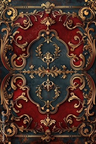 Vibrant red and blue background with intricate gold design. Perfect for adding a touch of elegance to any project