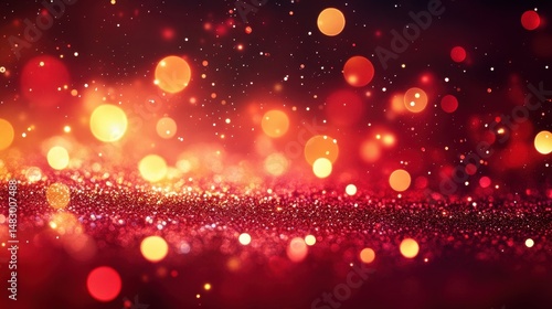 Vibrant red and gold bokeh lights creating a festive atmosphere