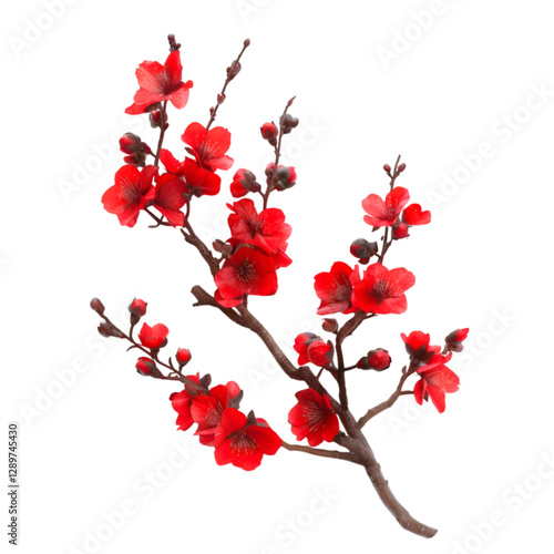 red flower, blossom, tree branch, black background, spring, nature, flora, botanical, beauty, vibrant, colours, red, dark, isolated, closeup, macro, detail, plant, flower, blooming, delicate, pretty, elegant, artistic, image, photo, floral, design, wallpaper, texture, background, illustration, art, graphic, visual, aesthetic, mood, serenity, peace, calmness, chinese new year, lunar new year, cherry blossom