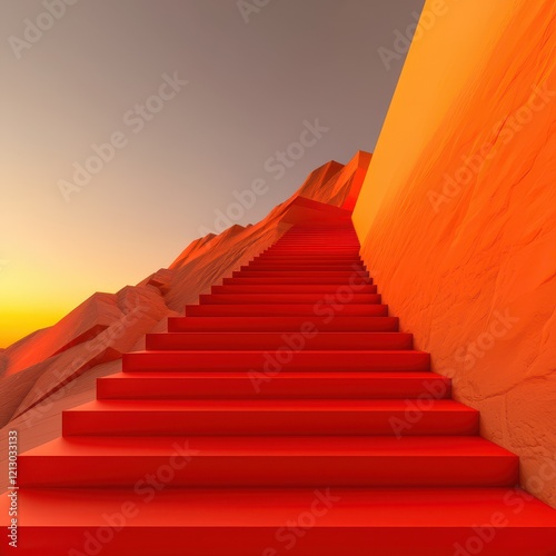 step, red, stair, upward, ascent, nature, sunset, landscape, architectural, bright, minimalism, journey, adventure, perspective, sunlight, calmness, vibrant, scenery, mountain, pathway, geometry, design, illustration, abstract, horizon, elevation, travel, exploration, modern, warm, light, colours, texture, surreal, artistic, visual, beauty, environment, inspiration, simplicity, structure, space, view, climb, location, gradient, shadow