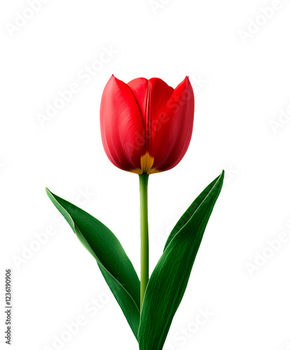 red tulip, green stem, flower, bloom, flower petals, nature, garden, botany, flora, minimalist, vibrant, spring, beauty, plant, growth, fresh, colours, organic, landscape, elegance, decoration, arrangement, seasonal, outdoors, sunlight, bright, closeup, sharpened, detail, traditional, scenic, natural, aesthetic, blossom, leaf, soft, single flower, high-coloured, lively