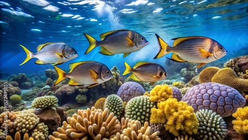 underwater, ocean, marin, reef, coral, fish, aquatic, wildlife, nature, sea, vibrant, colourful, tropical, ecosystem, school of fish, biodiversity, stripes, coral reef, marine life
