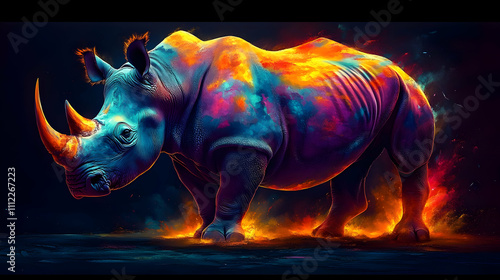 Vibrant Rhino Art: Fiery Colors, Majestic Beast