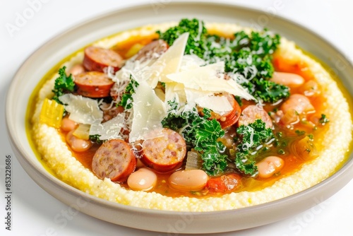 Vibrant Sausage and Bean Stew on Creamy Polenta
