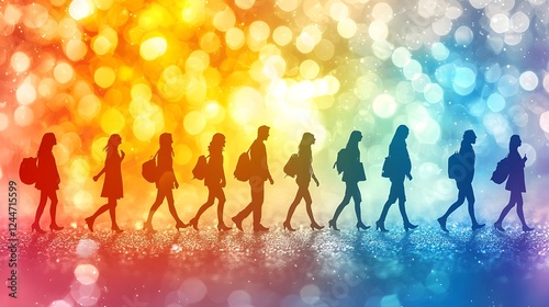 Vibrant Silhouettes in Motion A Diverse Group Walking Towards the Future