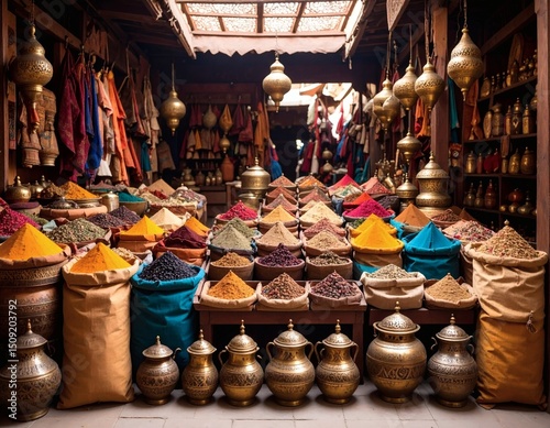 Vibrant Spices and Aromatic Treasures of a Moroccan Souk