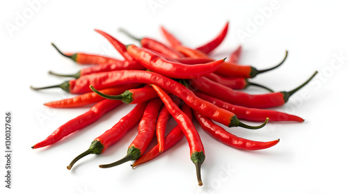 Vibrant Spicy Red Chili Peppers Pile - Fresh Hot Cooking Spice Food Ingredient White Background