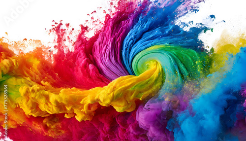 Vibrant Spiral Burst: Rainbow Holi Paint Powder Explosion