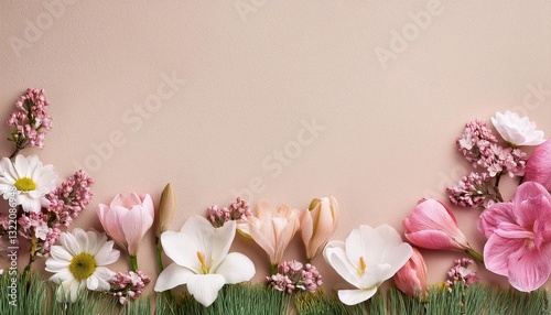 Vibrant Spring Blossoms Against a White Paper Backdrop A Symphony of Colors Amidst Serene Simplicity, Capturing the Essence of Natures Renaissance.