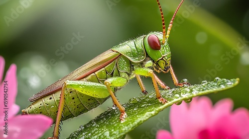 Vibrant Spring Scene: Macro Shot of Colorful Insect on Flower in Meadow
