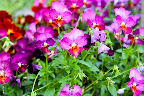 viola, flower, bloom, blossom, colourful, mixed, orange, red, purple, pink, yellow, white, garden, spring, plant, nature, floral, botanical, gardening, ornamental, decorative, vibrant, beautiful, small, petite, many-coloured, variety, flowering, seasonal, landscaping, horticulture, bed, border, bright, cheerful, charming, delicate, fresh, natural, growth, blooming, flora, garden design, violet