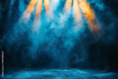 Vibrant Stage Lighting with Blue and Orange Beams, Fog Effects, and Dramatic Lighting for Concert and Event Performance