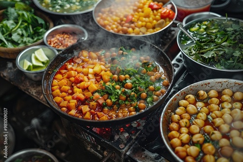 street, food, market, produce, stew, vibrant, cooking, fresh, spicey, metal, pot, vegetable, herb, chickpea, potato, greener, simmering, traditional, cookery, delicious, culinary, seller, flavorful, authentic, healthy, aromatic, ingredient, hearty, bowl, tomatoes, preparation, leafy, parsley, appetising, diverse, dietary, colourful, homemade, dish, local, gastronomy, natural, organic, seasoning, texture, rustic