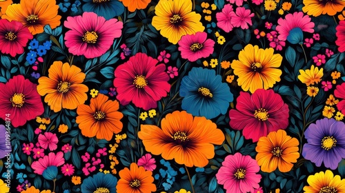 Vibrant summer floral seamless pattern ideal for card design and fabric printing bold colors nature inspired decor