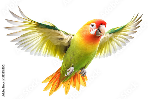 parrot, bird, flying, wing, feather, tropical bird, wildlife, nature, animal, aviation, flight, freedom, movement, motion, isolated, studio shot, closeup, detailed, bright, vibrant, colourful, exotic, tropical, pet, avian, zoology, ornithology, horizontal, full body, wingspan, beauty, elegance, grace