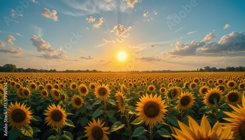 sunflower, field, sunset, sky, summer, nature, flower, landscape, agriculture, bloom, colours, sunlight, plant, beauty, flower petals, green, horizon, scenic, tranquil, rural, bright, dawn, evening, scenery, floral, growth, warmth, vibrant, fresh, natural, yellow, blue, cloud, atmosphere, peaceful, environment, earth, flora, seasonal, sunny, calmness, picturesque, view, countryside, lush, expansive