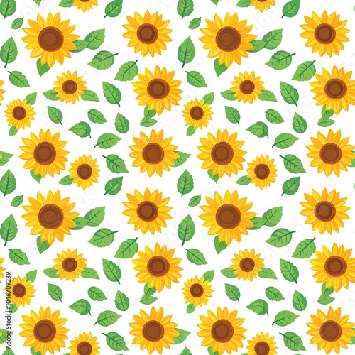 Vibrant Sunflower Seamless Pattern: Infuse Your Designs with Cheerful Sunflowers for a Fresh and Uplifting Look in Fashion, Home Decor, and Accessories