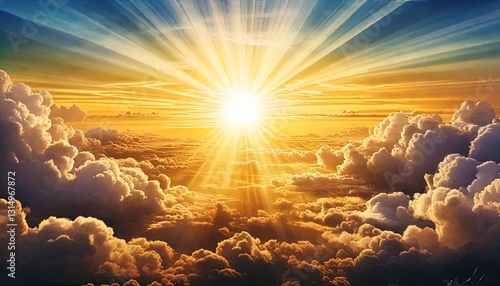 Vibrant Sunrise Above Dreamlike Clouds in a Surreal Artistic Illustration