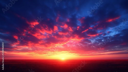 sunset, sunrise, sky, cloud, red, orange, yellow, blue, purple, vibrant, colours, field, grass, landscape, nature, horizon, evening, morning, dawn, dusk, light, sun, ray, glow, beauty, scenic, picturesque, amazing, spectacular, breathtaking, awesome, incredible, majestic, dramatic, fiery, intense, warm, cool, contrast, texture, atmosphere, mood, serenity, peace, calmness, calm