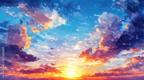 Vibrant sunset sky cloudscape, digital art, background