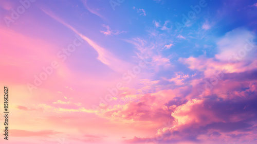 Vibrant sunset sky, pink and blue colors, evening clouds, colorful twilight, serene hues, beautiful sky, pastel sunset, cloudscape, sky hues, dusk sky, pink sunset