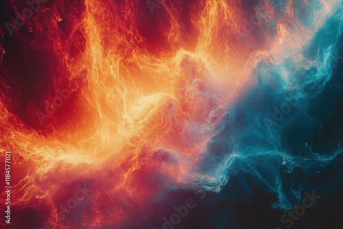 Vibrant swirl of orange and blue colors resembling cosmic phenomena or abstract art in motion