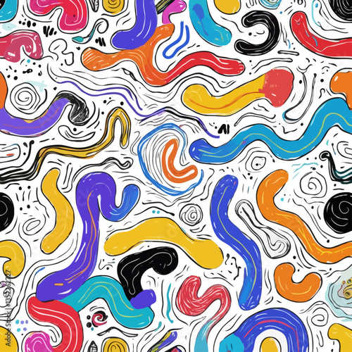 Vibrant, swirling patterns with bold colors, dynamic shapes, and a playful, psychedelic vibe—energetic and eye-catching in every way!