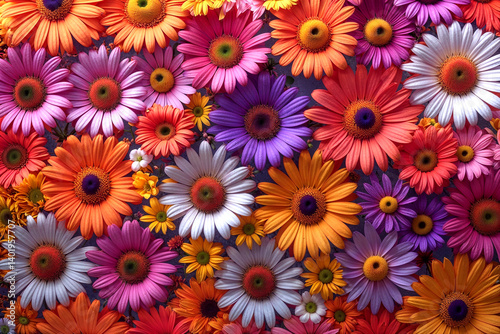 vibrant tapestry of colorful gerbera daisies creates a lush and textured floral arrangement, perfect for lively and decorative designs with a natural feel