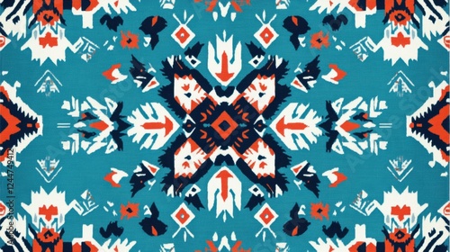 Vibrant Teal Red and White Ikat Textile Pattern Seamless Tribal Design for Fashion Home Decor