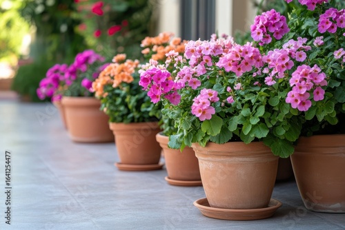 Vibrant Terracotta Pots Filled with Colorful Blooming Flowers for Garden Decor