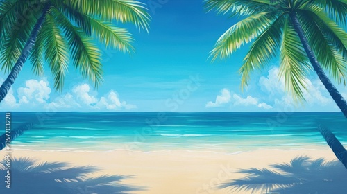 beach, tropical, water, turquoise, scene, vibrant, palm, sky, cloud, sand, nature, coast, relaxation, shore, sunshine, vacation, beauty, landscape, overview, tranquil, picturesque, view, paradise, sunny, enjoyment, ocean, island, horizon, environment, summer, calm, get-away, coastal, retreat, scenic, fresh, clear, ambience, leisure, escape, holiday, carefree, day, bright, peaceful, travel