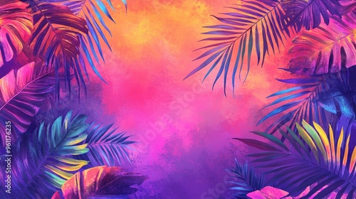Vibrant Tropical Leaves Creating an Artistic Colorful Background