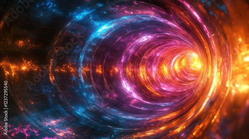 Vibrant tunnel of light with swirling colors and cosmic energy