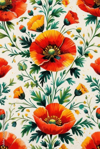 Vibrant Ukrainian Petrykivka Floral Patterns - Hand-Painted Poppies & Foliage
