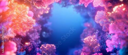 Vibrant Underwater Coral Reef with Colorful Marine Life and Glowing Sea Plants in Deep Ocean