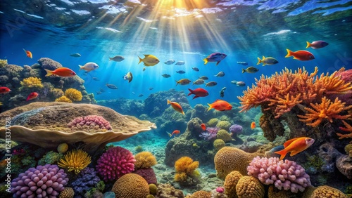 Vibrant Underwater Scene with Colorful Coral and Diverse Fish