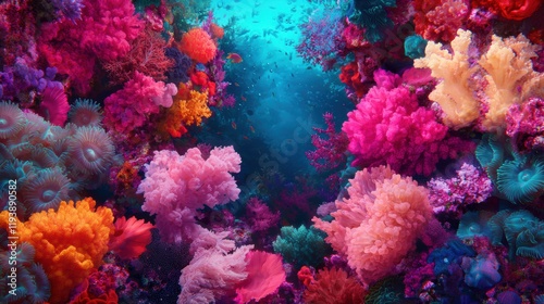 Vibrant Underwater Scene with Colorful Coral and Marine Life