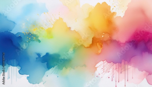 Vibrant Watercolor Artistry Abstract Blot Spread Texture Banner with Intense Color Play on a White Background, Embracing Artistic Expressiveness and Creative Energy