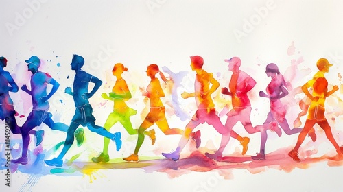Vibrant Watercolor Illustration of Multiple Runners in Motion