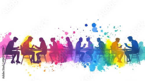 watercolor, business, professional, brainstorming, meeting, creativity, teamwork, collaboration, workspace, innovation, design, communication, idea, planning, technology, sharpened, research, strategy, development, silhouette, colours, abstract, table, laptop, document, conversation, office, environment, inspiration, management