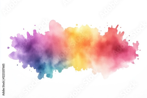 Vibrant watercolor splash blending colors of red, orange, yellow, green, and blue on white background