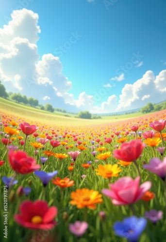 vibrant wildflower fields annual blooms bright colors under clear blue sky nature scene, grassland, meadow, petal, spring, sunset, horizon, flora